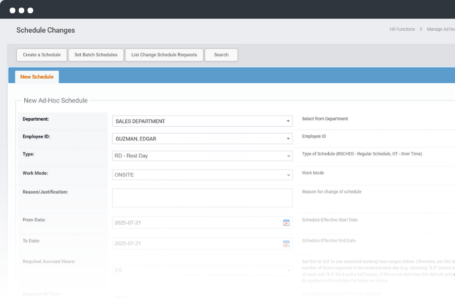 We understand that each company have different policies when it comes to scheduling and time-keeping. With HRTeamware™ you can customize your HRTeamware™ instance in many ways. For example you can change the default Night Pay or Differential time range, change the per leave type application lead-time (and post hoc) or specify Time-In grace periods among others. If necessary we can customize your HRTeamware™ for a really unique business rule.
