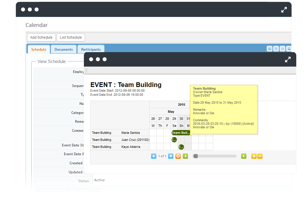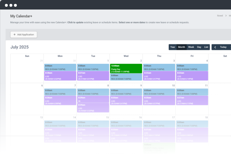 HRTeamware™ allows your Employees to view their schedules, actual attendance log, leaves (both new and approved ones) and even holidays as set by your company in one consolidated calendar. This makes it easy to plan as well as to identify discrepancies with their attendance which may have an effect on payroll.