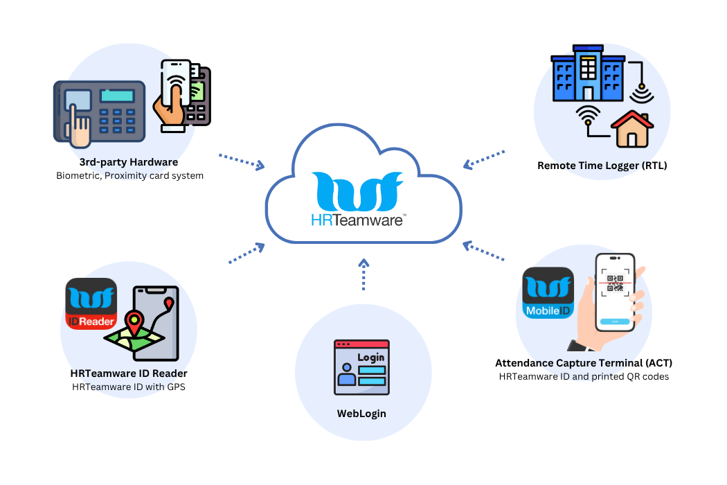 If you have an existing hardware-based attendance capture system like biometrics or proximity-card readers then we should be able to integrate them with HRTeamware™. As long as the hardware saves the attendance records in a common database format then we, or your in-house programmer, can customize the HRTeamware™ Remote Application Programming Interface (API) so it can access the attendance records and send these to your HRTeamware™ instance. This works really well even if you have several branches or sites and each having their own hardware-based attendance capture. It means that once configured, you can already centralize your attendance and time-keeping via your HRTeamware™ instance.