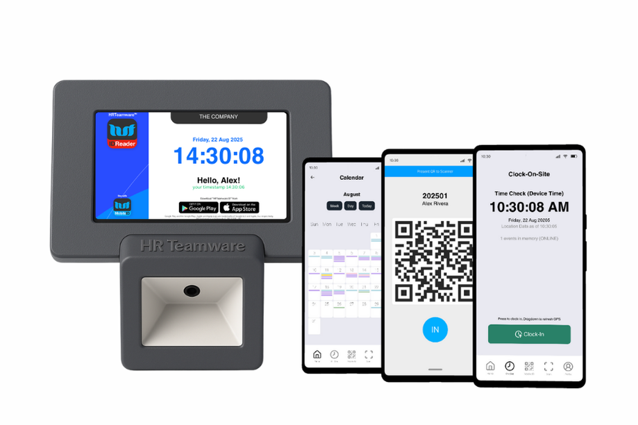 HRTeamware provides complimentary attendance reader terminals to its clients. The device can scan HRTeamware App ID QR Codes and Printed QR codes.