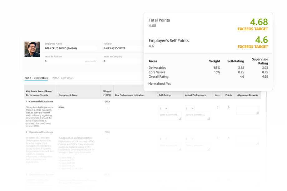 The Goal! Performance Management module provides a structured and fair approach to evaluating employee performance and aligning it with organizational objectives. Using flexible tools, HR teams can design multiple Performance Management System (PMS) Goal! forms tailored for different roles, departments, or levels, and schedule when they should be completed by managers and employees. The system supports both qualitative feedback—such as 360-degree reviews—and quantitative scoring, with KRAs and KPIs that can be weighted to ensure balanced evaluations. APIs allow KPI data to be pulled automatically from other modules or external systems, giving leaders real-time performance visibility. This integrated approach ensures that assessments are transparent, consistent, and measurable, while also empowering employees with clear goals and expectations. Ultimately, Performance Tracking promotes accountability, fairness, and continuous improvement across the workforce.